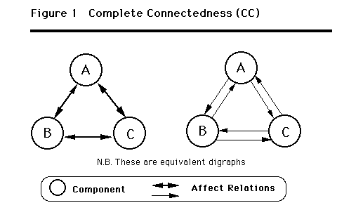 - This Figure represents a system with complete connectedness. You can see that all possible pairs of components are connected by the kind of double headed arrows that indicate reciprocal, or bi-directional, affect relations.