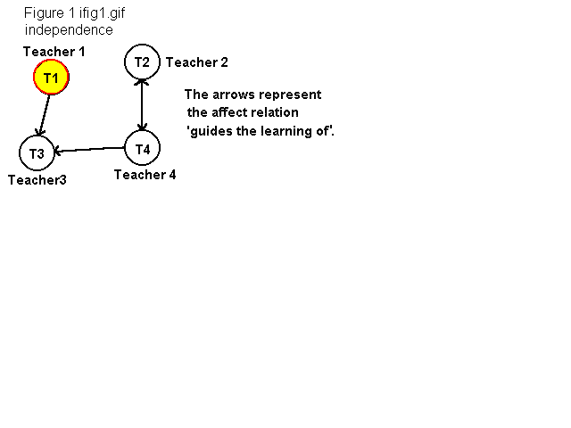 Another example of indepdence would be a social studies teacher who ignores instructions by the school board and superintendent to change his curriculum. With respect to the affect relation "decides curriculum", this teacher would have the property of independence.