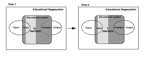 - There are many examples of strain in educational system. For example, in the illustration above, there were 10 teachers in time 1. Now in time 2, there are 7 teachers in a school because 3 teachers are retired. The change in the number of teachers is a strain in the school system. Another example is the change of safe environment within a school system. From students'point of view, students were relatively safe in the school, but in time 2, the safe environment became worse in the school because of guns, drugs, and student violence. Also, there is a strain in terms of the number of students in a course when 70 students enrolled in the beginning of the semester, but 50 students remain and others dropped during the semester. The increase of tuition is also a kind of strain to students. That is, in time 1, the tuition was not expensive so students did not have to work, but in time 2, the tuition increases and so students have to work more to support it.