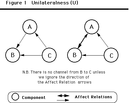 - In a unilateral affect relation either component x can affect y, or y can affect x, but not both. Therefore, a unilateral digraph is one that, although every possible pair is connected by at least a one way channel (i.e. there are no disconnected comp